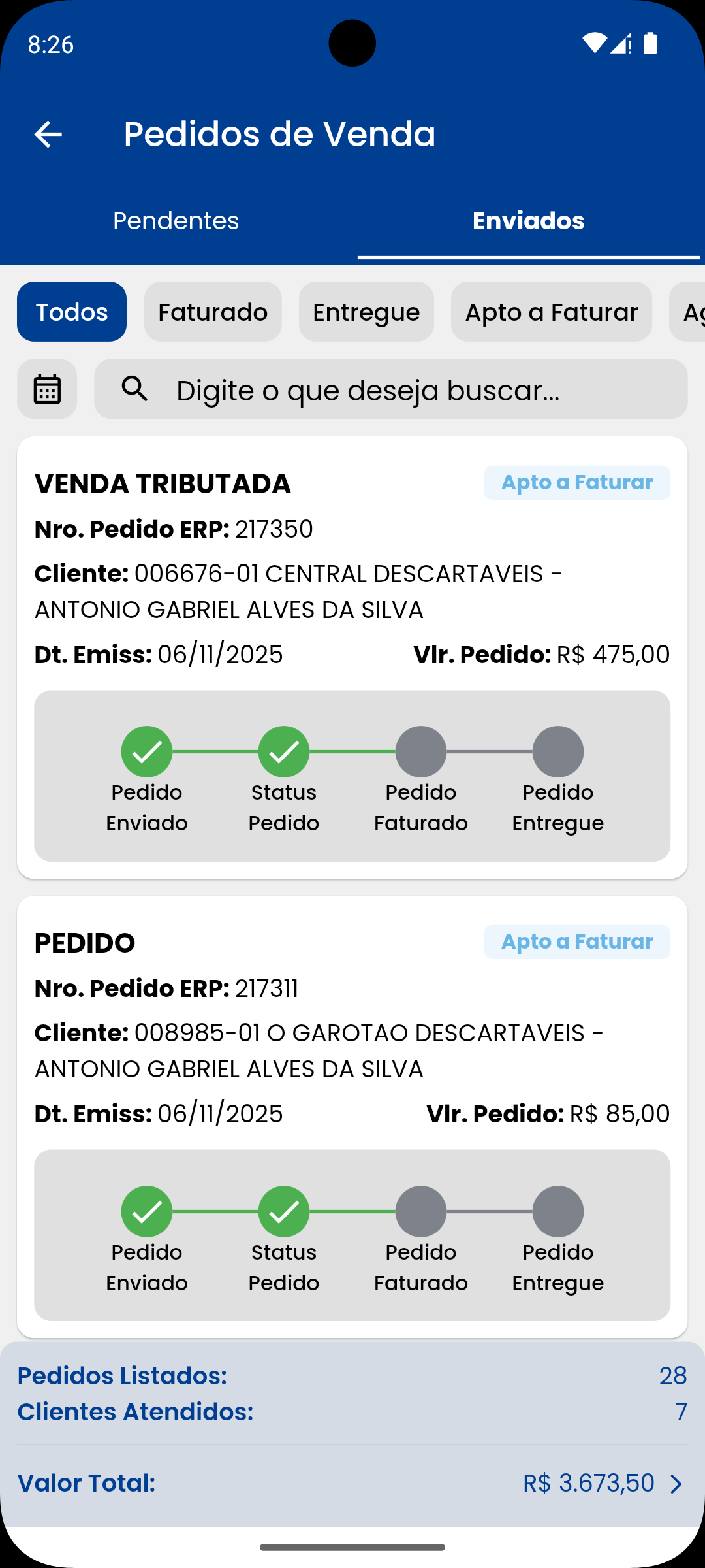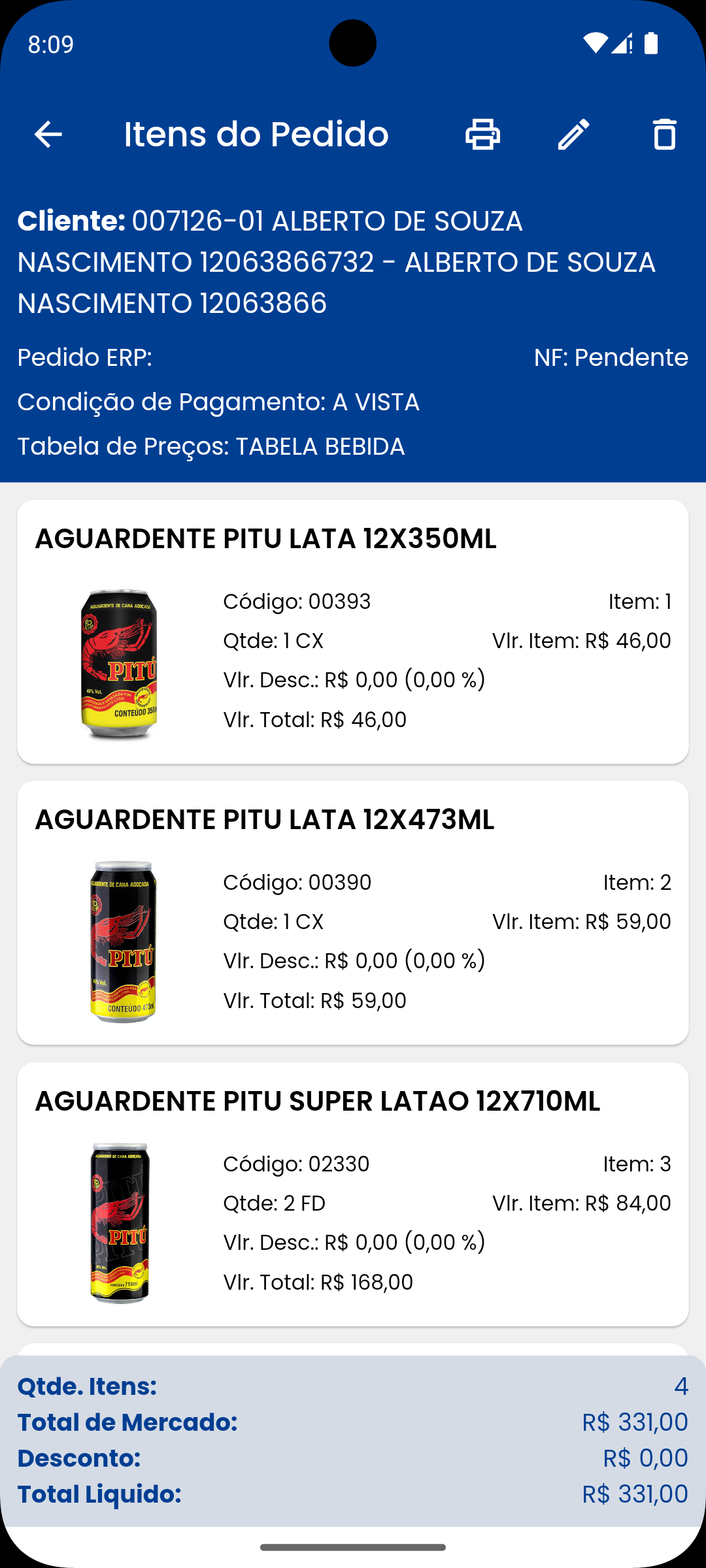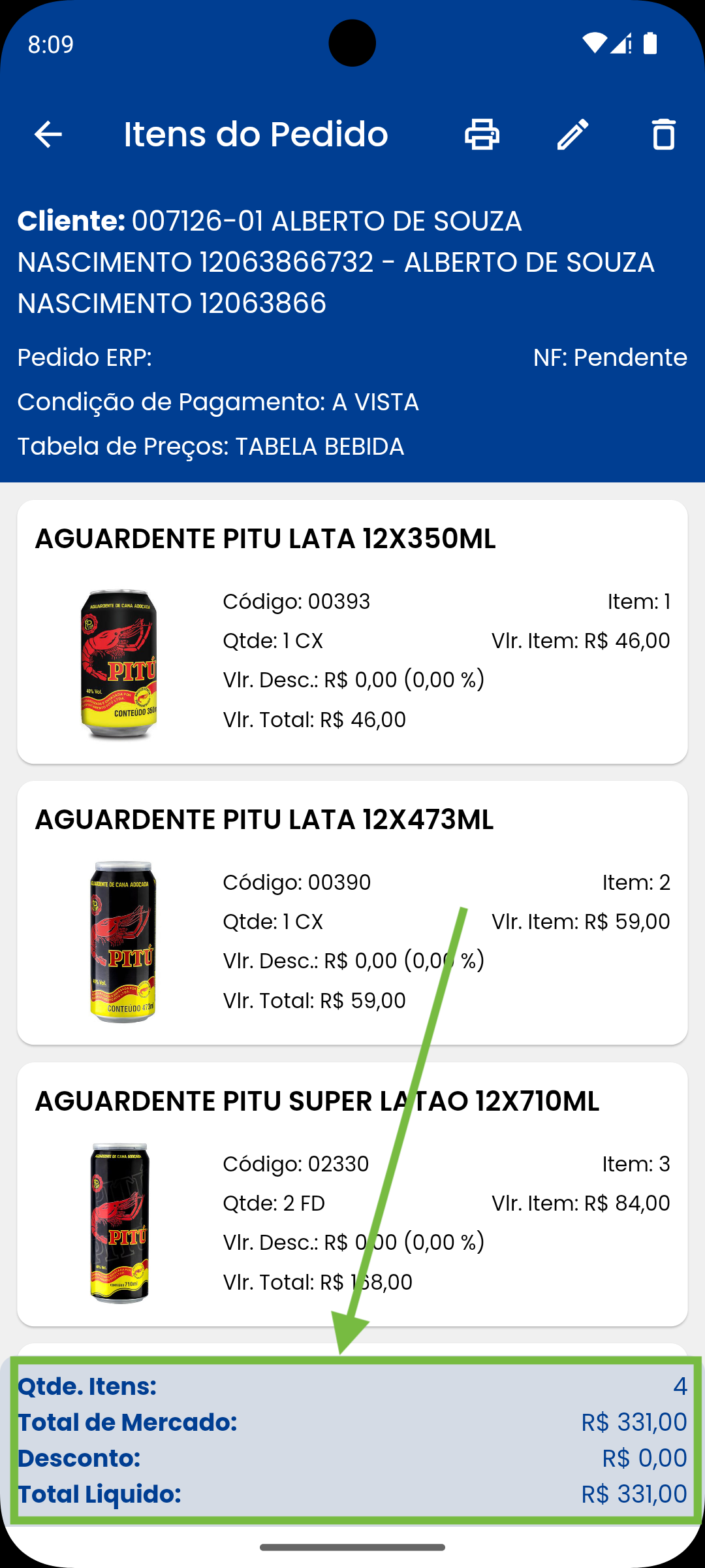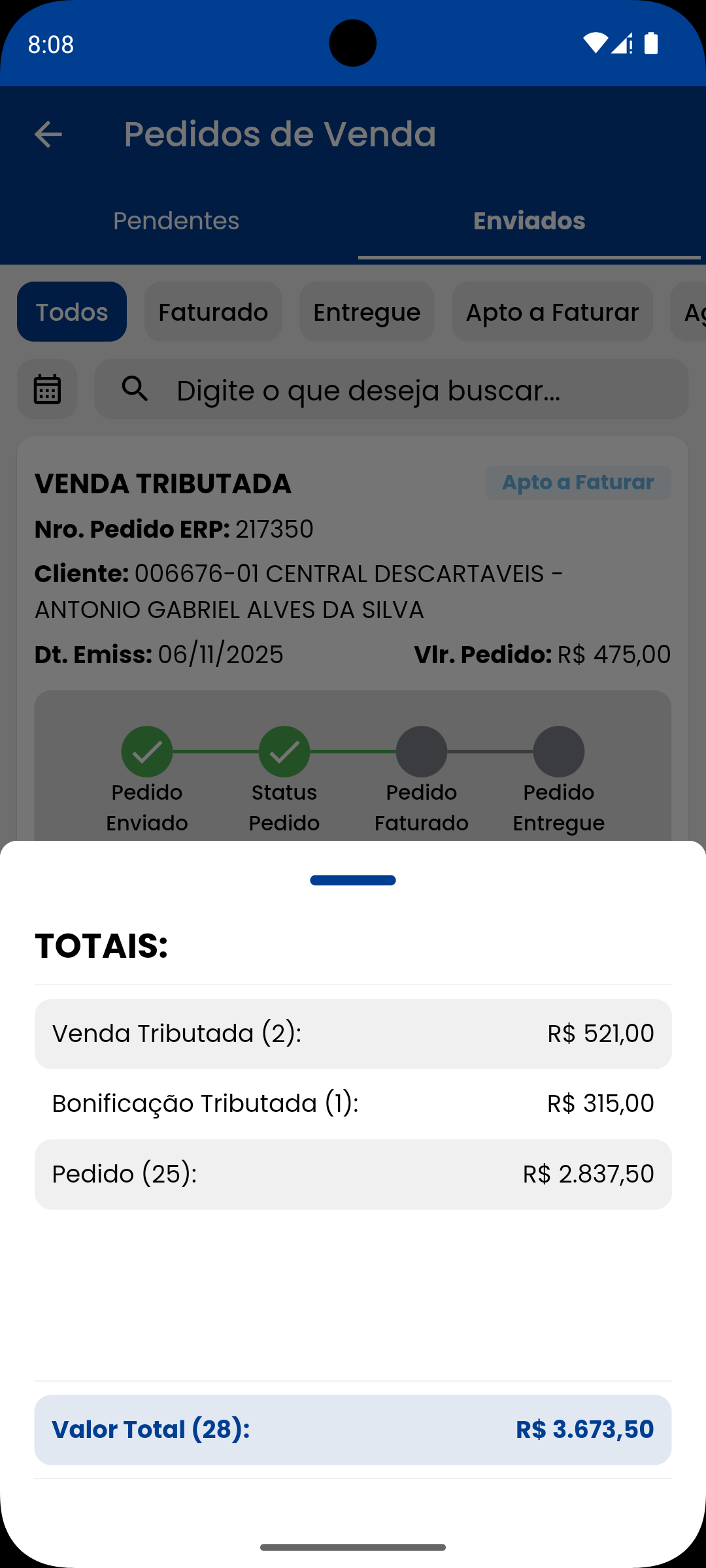 Ao clicar em cima de algum card de pedido de venda, você será redirecionado para a tela de itens do pedido de venda.