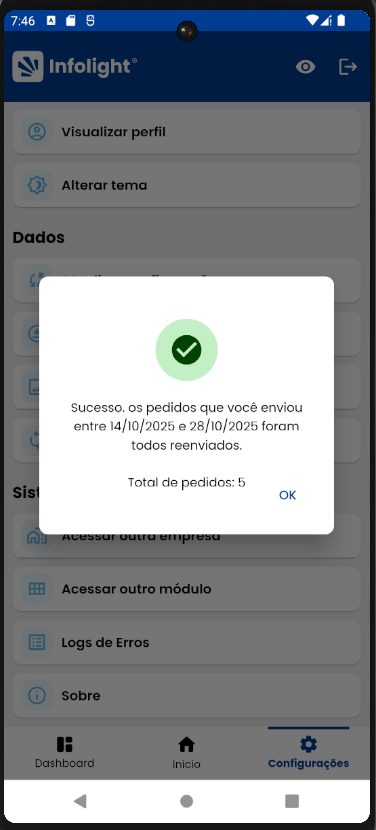 - Reenviar pedidos — Possibilita o envio novamente de pedidos que não foram transmitidos devido à falta de conexão ou erro de comunicação.
