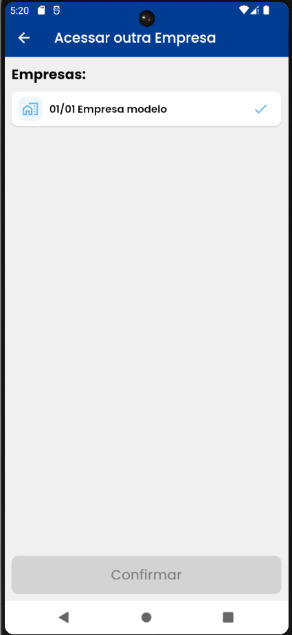 - Acessar outra empresa — Permite ao usuário trocar a empresa em uso, caso esteja disponível.