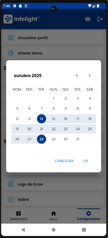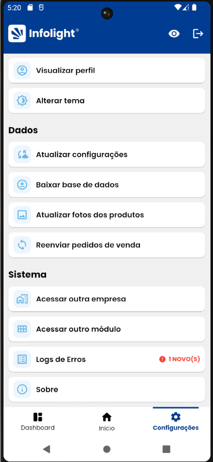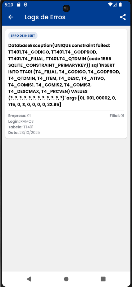 - Logs de erros — Exibe o histórico de erros registrados pelo aplicativo.