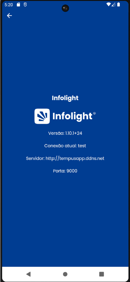 - Sobre — Apresenta informações técnicas sobre o aplicativo, como versão instalada, nome da conecao, servidor e porta de conexão.